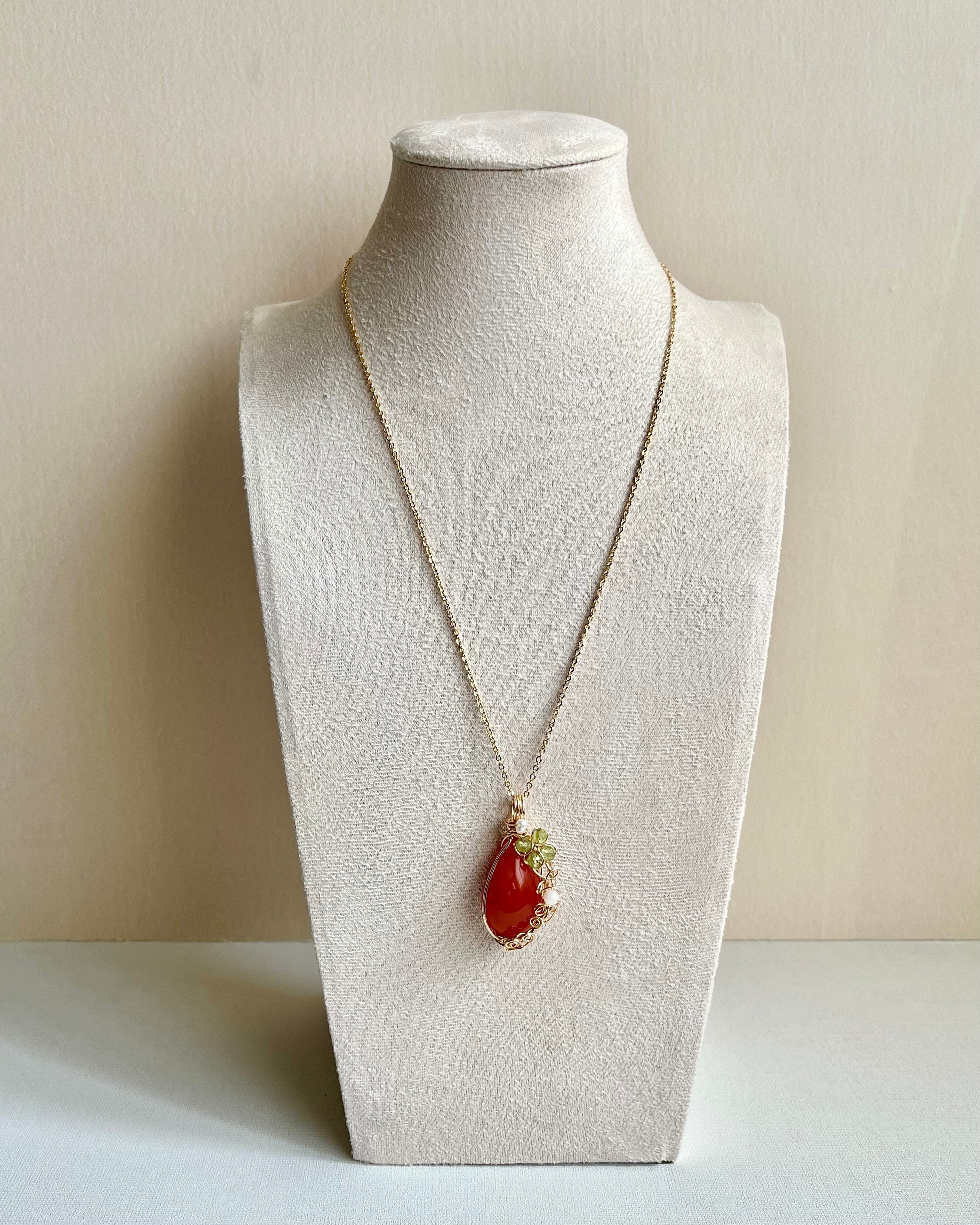 前を向いて歩く*~ 情熱の石カーネリアン (ワイヤーアクセサリー*ワイヤーアートネックレス*ワイヤーアートジュエリー天然石)